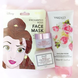 And finally, some rose infused skin heroes that I’ve tried lately and loved. The use of rose water and rose hip in beauty products is ancient, and has been popular for millennia with good reason. Its great for keeping your skin soft, healthy and youthful, but the reason I like it is just because roses are my favourite. Anything rose scented makes me feel great. I bought two of these Disney Beauty face masks just because they made me smile. They’re only £4, shop HERE, and come in a range of Disney princesses (I picked Aurora and Belle). Honestly, I thought they’d just be fun, but my skin actually really liked them. They have a really cute pattern on the sheet mask too.