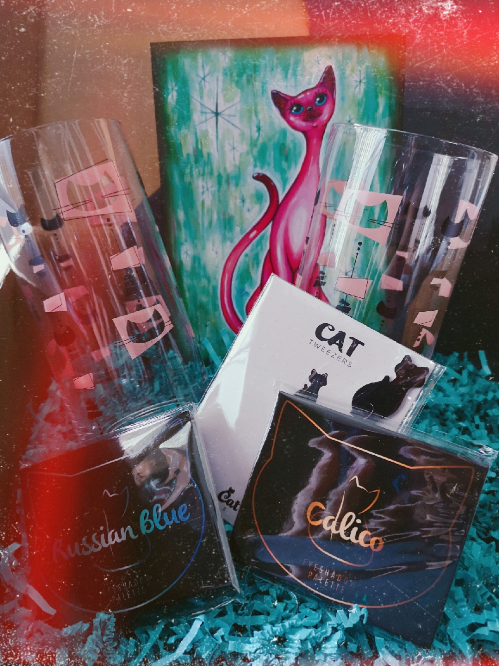 I’ve subscribed to the Cat Lady Subscription Box (catladybox.com) for a few months now, and I’m always blown away by the creativity and the quality of the items in the boxes. This month’s theme was Meowlentine’s Day, and had some cat themed beauty items to get you ready for a romantic date,… or a movie night in with your cat. It also had some really adorable tall glasses with a mid-century style cat print on them, and a catnip heart for your spoiled feline.