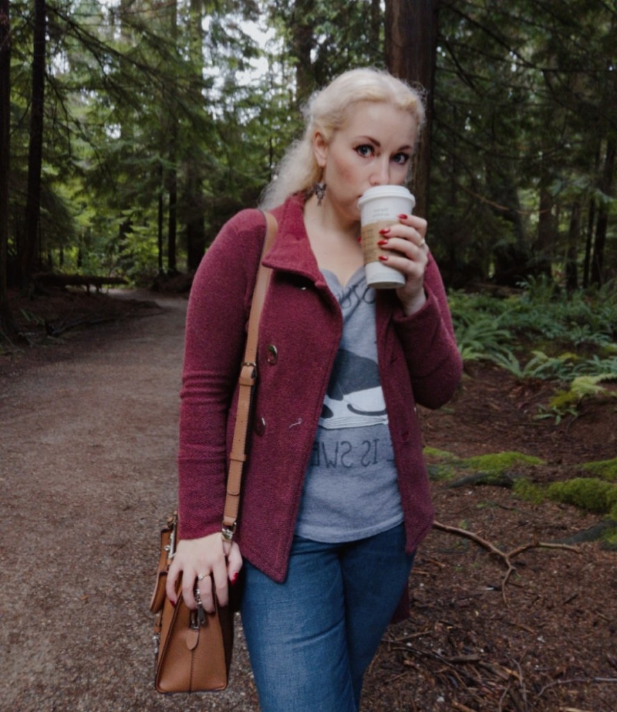 This time of year, brown just doesn’t feel boring. I’m still using my Colourpop bronze tone eyeshadow palette, but now I’ve pulled out my Autumn jackets. This one is soft and cozy, and I feel like it’s just right for the transition months. It has a cute belt to cinch in the waist too. Jeans and low boots and my classic brown Guess bag tie it all together. Soon, t shirts will be too light weight, and I quite like the days when I need a soft chunky knit.