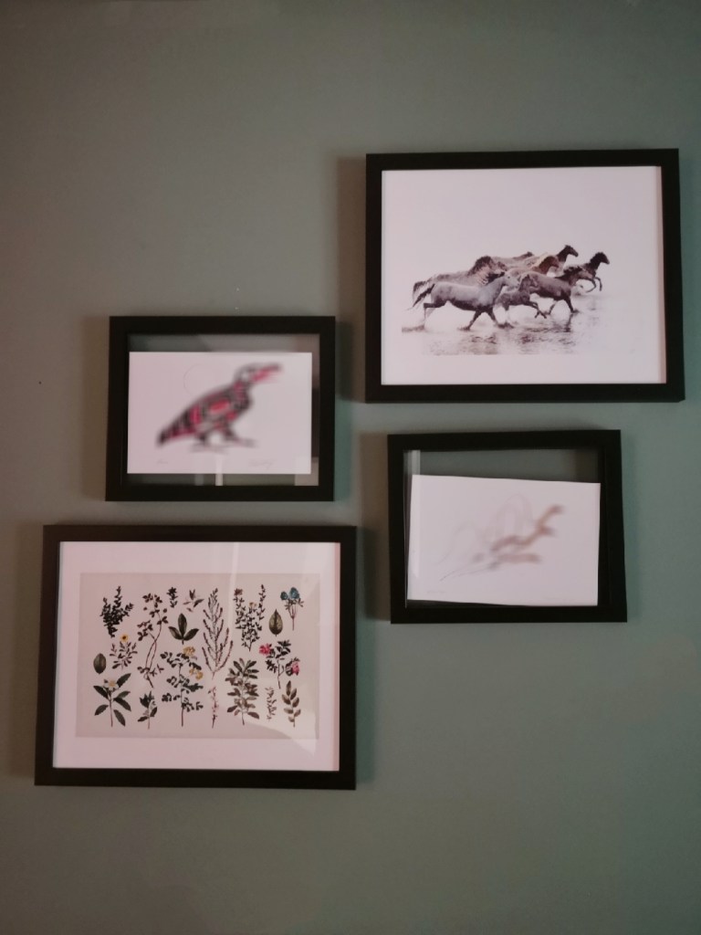 Here I blurred out the two art cards that aren’t from Photowall so that you can see the Victorian garden botanical drawing and herd of wild horses photo that I chose. I love how these look. They are beautifully mounted and framed and were easy to hang. I ordered the smaller size of these, but you can get them in a range of sizes. To have a browse through their framed prints, click HERE.