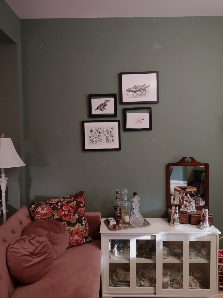 My lounge doesn’t have a window directly to the outside, so it has a very cozy vibe and I’ve played that up with timber and old fashioned touches, with images and items that reflect nature which is just outside out window here in Vancouver. I quite like how the Spring afternoon sunshine falls through here.